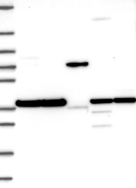 A Western blot analysis is performed on a panel of human tissues and cell lines to evaluate antibody specificity. For antibodies with unreliable result a revalidation using an over-expression lysate is performed.