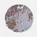 Antibody staining in the annotated cell types in the current human tissue is reported as not detected, low, medium, or high, based on conventional immunohistochemistry profiling in selected tissues. This score is based on the combination of the staining intensity and fraction of stained cells.