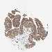 Antibody staining in the annotated cell types in the current human tissue is reported as not detected, low, medium, or high, based on conventional immunohistochemistry profiling in selected tissues. This score is based on the combination of the staining intensity and fraction of stained cells.