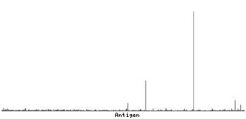 The curve in blue displays the predicted antigenicity i.e. the tendency for different regions of the protein to generate an immune response, with peak regions being predicted to be more antigenic.The curve shows average values based on a sliding window approach using an in-house propensity scale. (read more).