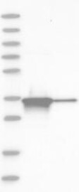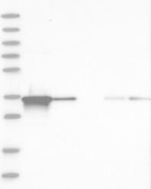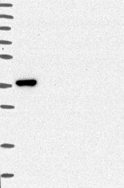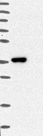 A Western blot analysis is performed on a panel of human tissues and cell lines to evaluate antibody specificity. For antibodies with unreliable result a revalidation using an over-expression lysate is performed.