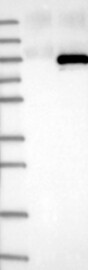 A Western blot analysis is performed on a panel of human tissues and cell lines to evaluate antibody specificity. For antibodies with unreliable result a revalidation using an over-expression lysate is performed.