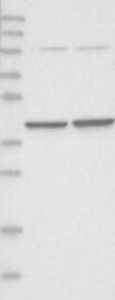 A Western blot analysis is performed on a panel of human tissues and cell lines to evaluate antibody specificity. For antibodies with unreliable result a revalidation using an over-expression lysate is performed.