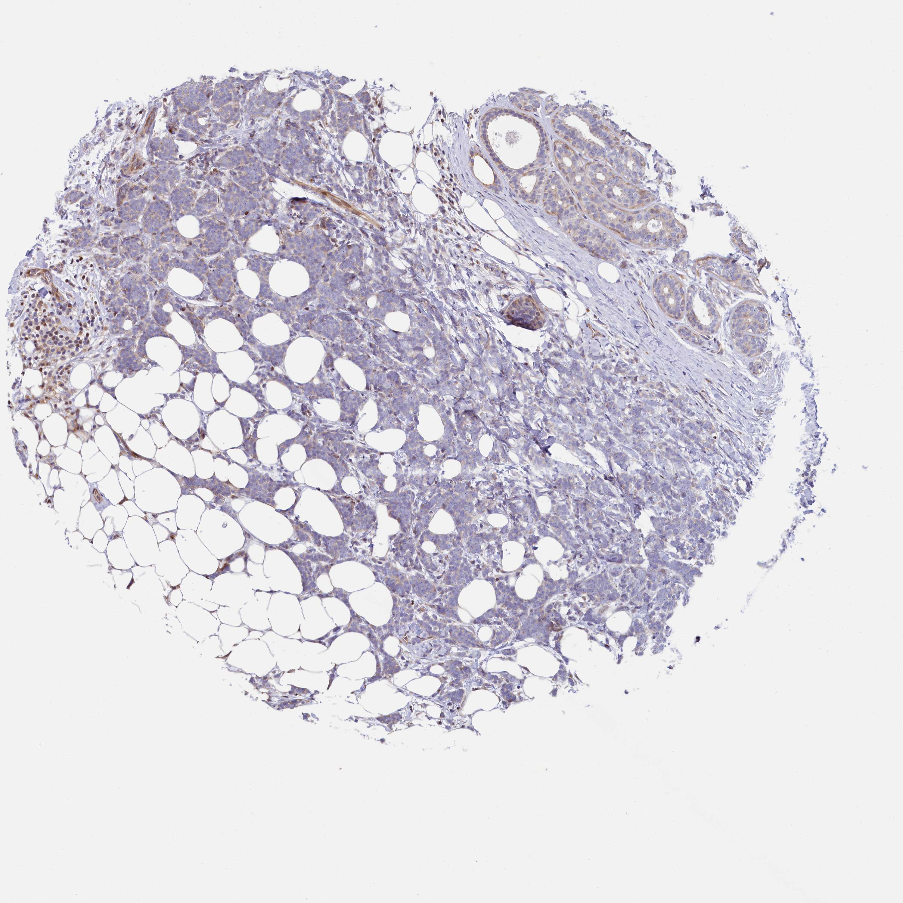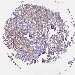 Antibody staining in the annotated cell types in the current human tissue is reported as not detected, low, medium, or high, based on conventional immunohistochemistry profiling in selected tissues. This score is based on the combination of the staining intensity and fraction of stained cells.