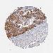 Antibody staining in the annotated cell types in the current human tissue is reported as not detected, low, medium, or high, based on conventional immunohistochemistry profiling in selected tissues. This score is based on the combination of the staining intensity and fraction of stained cells.