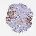 Antibody staining in the annotated cell types in the current human tissue is reported as not detected, low, medium, or high, based on conventional immunohistochemistry profiling in selected tissues. This score is based on the combination of the staining intensity and fraction of stained cells.
