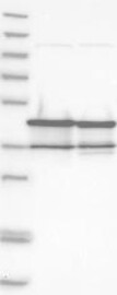Antibody band pattern is confirmed by antibody HPA028105. Analysis performed using a standard panel of samples.