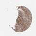 Antibody staining in the annotated cell types in the current human tissue is reported as not detected, low, medium, or high, based on conventional immunohistochemistry profiling in selected tissues. This score is based on the combination of the staining intensity and fraction of stained cells.