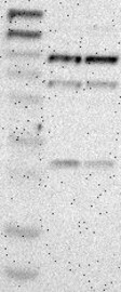 Weak band of predicted size but with additional bands of higher intensity also present. Analysis performed using a standard panel of samples.