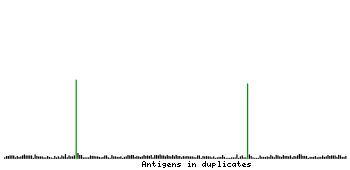 At the top of the view, the position of the antigen (identified by the corresponding HPA identifier) is shown as a green bar. A yellow triangle on the bar indicates a <100% sequence identity to the protein target.