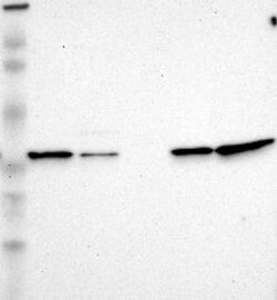 A Western blot analysis is performed on a panel of human tissues and cell lines to evaluate antibody specificity. For antibodies with unreliable result a revalidation using an over-expression lysate is performed.