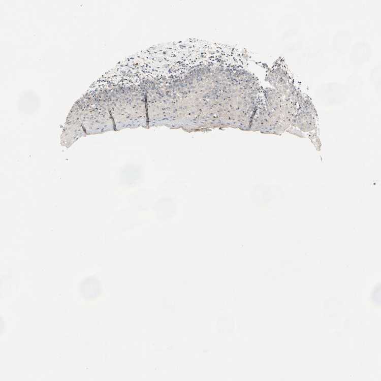 Antibody staining in the annotated cell types in the current human tissue is reported as not detected, low, medium, or high, based on conventional immunohistochemistry profiling in selected tissues. This score is based on the combination of the staining intensity and fraction of stained cells.