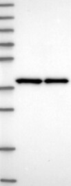 A Western blot analysis is performed on a panel of human tissues and cell lines to evaluate antibody specificity. For antibodies with unreliable result a revalidation using an over-expression lysate is performed.