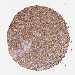 Antibody staining in the annotated cell types in the current human tissue is reported as not detected, low, medium, or high, based on conventional immunohistochemistry profiling in selected tissues. This score is based on the combination of the staining intensity and fraction of stained cells.