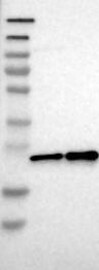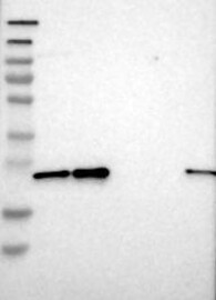 A Western blot analysis is performed on a panel of human tissues and cell lines to evaluate antibody specificity. For antibodies with unreliable result a revalidation using an over-expression lysate is performed.