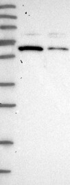 Antibody band pattern is confirmed by antibody HPA037573. Analysis performed using a standard panel of samples.