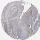 Antibody staining in the annotated cell types in the current human tissue is reported as not detected, low, medium, or high, based on conventional immunohistochemistry profiling in selected tissues. This score is based on the combination of the staining intensity and fraction of stained cells.