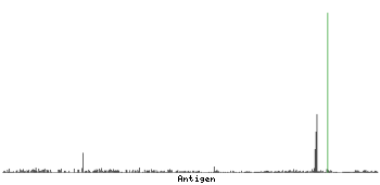 At the top of the view, the position of the antigen (identified by the corresponding HPA identifier) is shown as a green bar. A yellow triangle on the bar indicates a <100% sequence identity to the protein target.