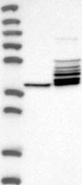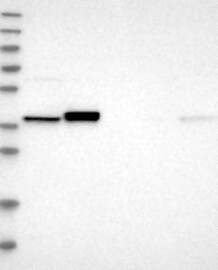 A Western blot analysis is performed on a panel of human tissues and cell lines to evaluate antibody specificity. For antibodies with unreliable result a revalidation using an over-expression lysate is performed.