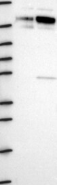 A Western blot analysis is performed on a panel of human tissues and cell lines to evaluate antibody specificity. For antibodies with unreliable result a revalidation using an over-expression lysate is performed.