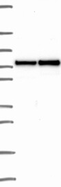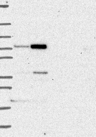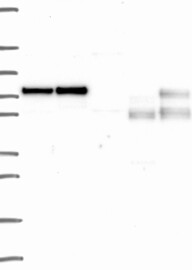 A Western blot analysis is performed on a panel of human tissues and cell lines to evaluate antibody specificity. For antibodies with unreliable result a revalidation using an over-expression lysate is performed.