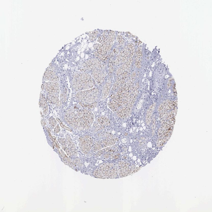 Antibody staining in the annotated cell types in the current human tissue is reported as not detected, low, medium, or high, based on conventional immunohistochemistry profiling in selected tissues. This score is based on the combination of the staining intensity and fraction of stained cells.