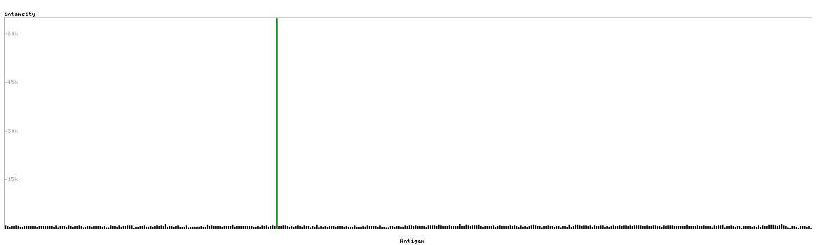 The curve in blue displays the predicted antigenicity i.e. the tendency for different regions of the protein to generate an immune response, with peak regions being predicted to be more antigenic.The curve shows average values based on a sliding window approach using an in-house propensity scale. (read more).