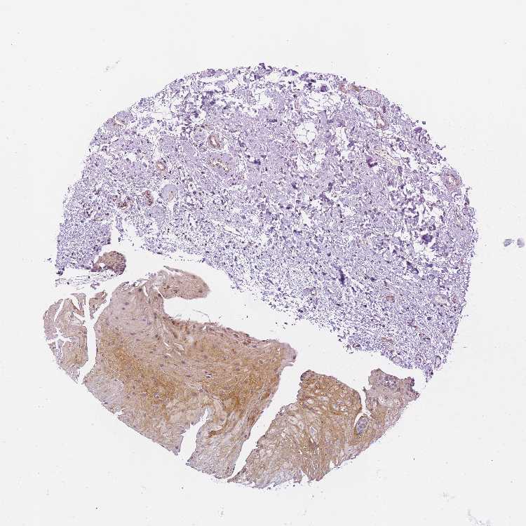 Antibody staining in the annotated cell types in the current human tissue is reported as not detected, low, medium, or high, based on conventional immunohistochemistry profiling in selected tissues. This score is based on the combination of the staining intensity and fraction of stained cells.