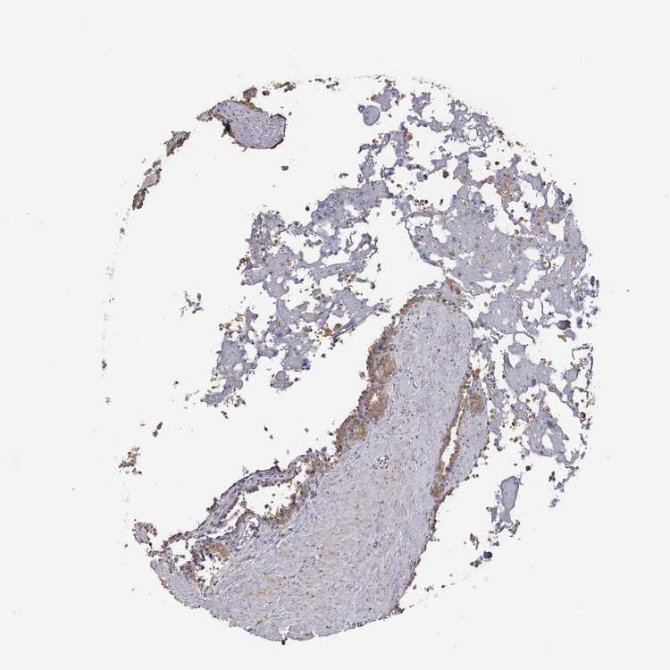 Antibody staining in the annotated cell types in the current human tissue is reported as not detected, low, medium, or high, based on conventional immunohistochemistry profiling in selected tissues. This score is based on the combination of the staining intensity and fraction of stained cells.