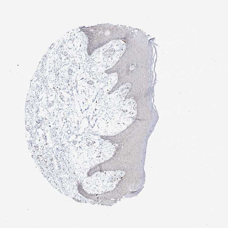 Antibody staining in the annotated cell types in the current human tissue is reported as not detected, low, medium, or high, based on conventional immunohistochemistry profiling in selected tissues. This score is based on the combination of the staining intensity and fraction of stained cells.