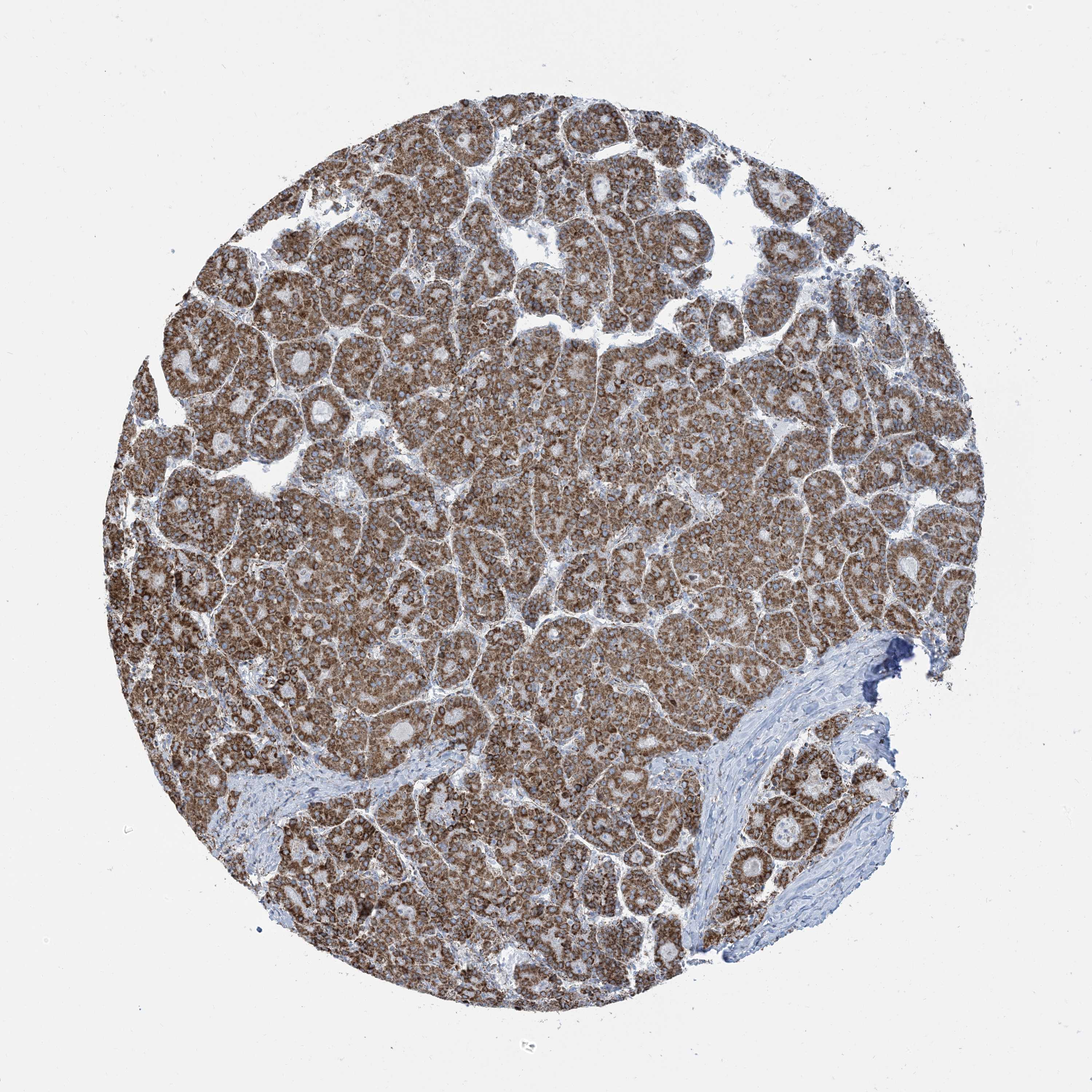 Antibody staining in the annotated cell types in the current human tissue is reported as not detected, low, medium, or high, based on conventional immunohistochemistry profiling in selected tissues. This score is based on the combination of the staining intensity and fraction of stained cells.