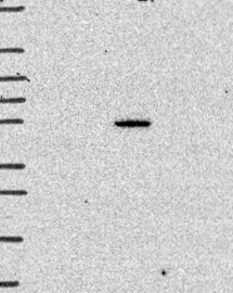 A Western blot analysis is performed on a panel of human tissues and cell lines to evaluate antibody specificity. For antibodies with unreliable result a revalidation using an over-expression lysate is performed.