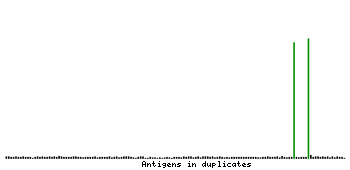 At the top of the view, the position of the antigen (identified by the corresponding HPA identifier) is shown as a green bar. A yellow triangle on the bar indicates a <100% sequence identity to the protein target.