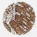 Antibody staining in the annotated cell types in the current human tissue is reported as not detected, low, medium, or high, based on conventional immunohistochemistry profiling in selected tissues. This score is based on the combination of the staining intensity and fraction of stained cells.