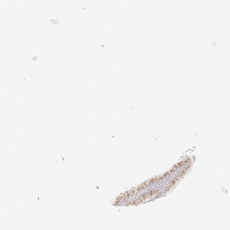 Antibody staining in the annotated cell types in the current human tissue is reported as not detected, low, medium, or high, based on conventional immunohistochemistry profiling in selected tissues. This score is based on the combination of the staining intensity and fraction of stained cells.