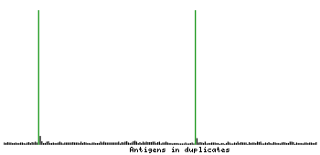 At the top of the view, the position of the antigen (identified by the corresponding HPA identifier) is shown as a green bar. A yellow triangle on the bar indicates a <100% sequence identity to the protein target.