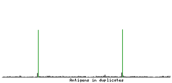 At the top of the view, the position of the antigen (identified by the corresponding HPA identifier) is shown as a green bar. A yellow triangle on the bar indicates a <100% sequence identity to the protein target.