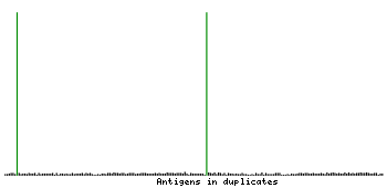 At the top of the view, the position of the antigen (identified by the corresponding HPA identifier) is shown as a green bar. A yellow triangle on the bar indicates a <100% sequence identity to the protein target.