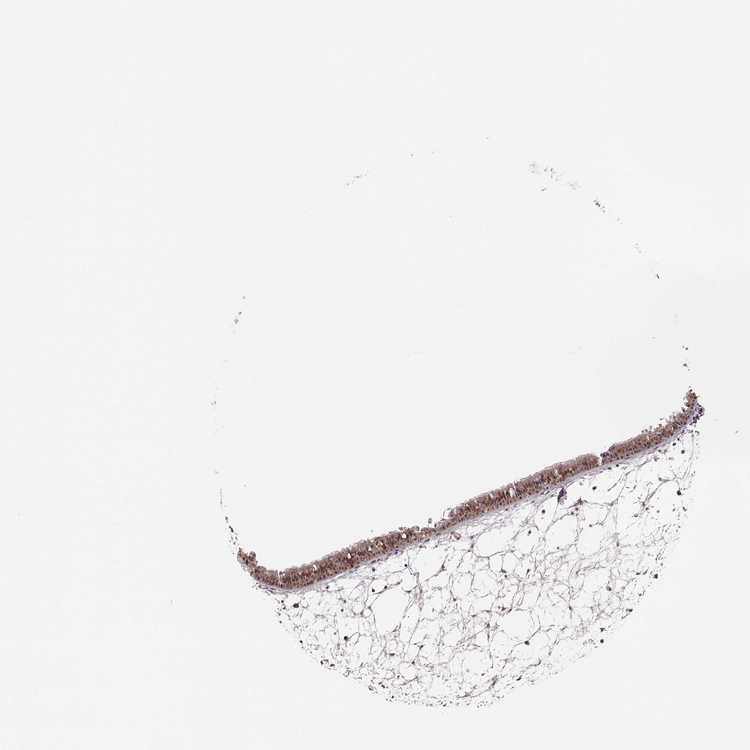 Ciliated cells (tip of cilia) Not detected-