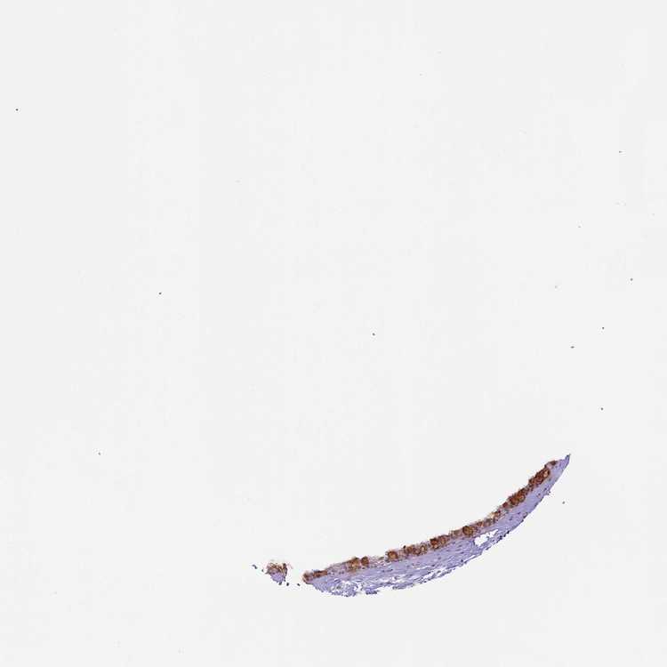 Antibody staining in the annotated cell types in the current human tissue is reported as not detected, low, medium, or high, based on conventional immunohistochemistry profiling in selected tissues. This score is based on the combination of the staining intensity and fraction of stained cells.