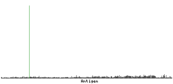 At the top of the view, the position of the antigen (identified by the corresponding HPA identifier) is shown as a green bar. A yellow triangle on the bar indicates a <100% sequence identity to the protein target.