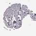 Antibody staining in the annotated cell types in the current human tissue is reported as not detected, low, medium, or high, based on conventional immunohistochemistry profiling in selected tissues. This score is based on the combination of the staining intensity and fraction of stained cells.