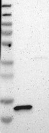 A Western blot analysis is performed on a panel of human tissues and cell lines to evaluate antibody specificity. For antibodies with unreliable result a revalidation using an over-expression lysate is performed.