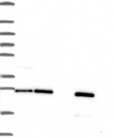 A Western blot analysis is performed on a panel of human tissues and cell lines to evaluate antibody specificity. For antibodies with unreliable result a revalidation using an over-expression lysate is performed.