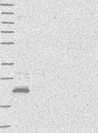 A Western blot analysis is performed on a panel of human tissues and cell lines to evaluate antibody specificity. For antibodies with unreliable result a revalidation using an over-expression lysate is performed.
