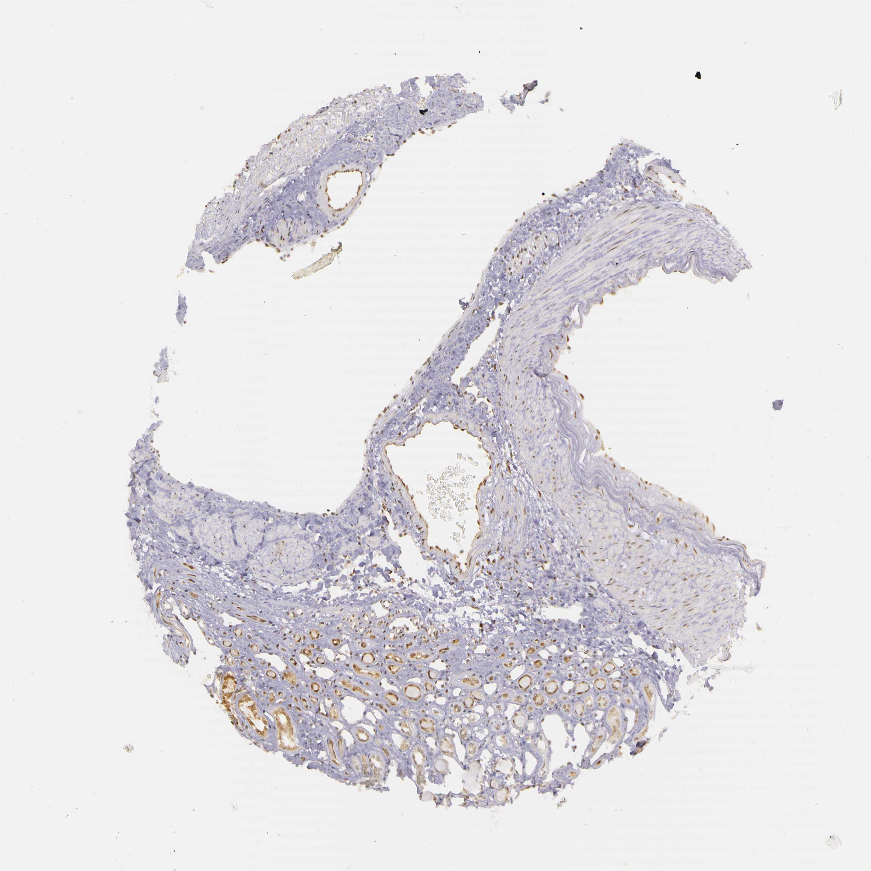 Antibody staining in the annotated cell types in the current human tissue is reported as not detected, low, medium, or high, based on conventional immunohistochemistry profiling in selected tissues. This score is based on the combination of the staining intensity and fraction of stained cells.