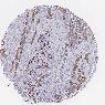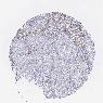 Antibody staining in the annotated cell types in the current human tissue is reported as not detected, low, medium, or high, based on conventional immunohistochemistry profiling in selected tissues. This score is based on the combination of the staining intensity and fraction of stained cells.