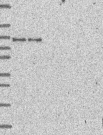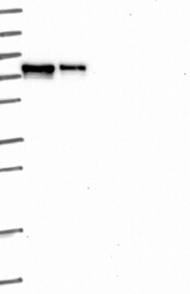 A Western blot analysis is performed on a panel of human tissues and cell lines to evaluate antibody specificity. For antibodies with unreliable result a revalidation using an over-expression lysate is performed.