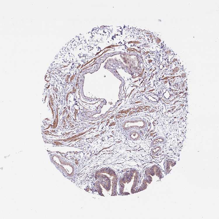 Antibody staining in the annotated cell types in the current human tissue is reported as not detected, low, medium, or high, based on conventional immunohistochemistry profiling in selected tissues. This score is based on the combination of the staining intensity and fraction of stained cells.