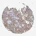 Antibody staining in the annotated cell types in the current human tissue is reported as not detected, low, medium, or high, based on conventional immunohistochemistry profiling in selected tissues. This score is based on the combination of the staining intensity and fraction of stained cells.